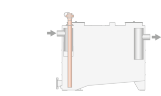 - For installation in DN 200 horizontal pipes coming from grease separator