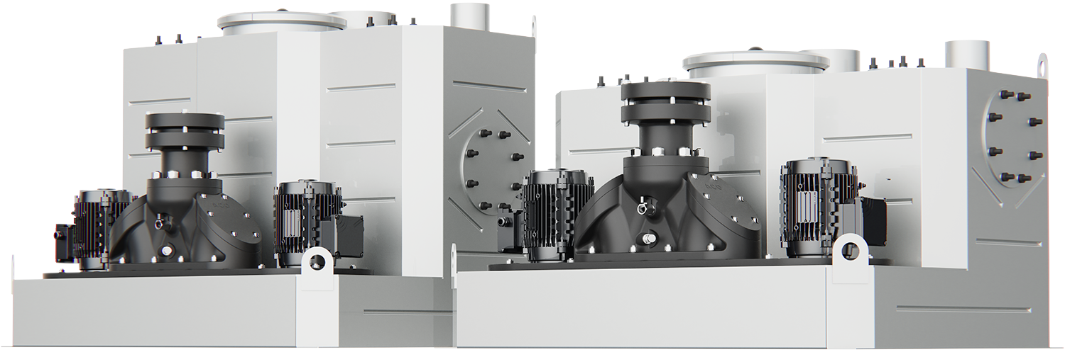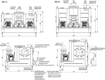 - Horizontal inlet sockets 3x DN 100/150, 1x DN100, each closed with a blank cover